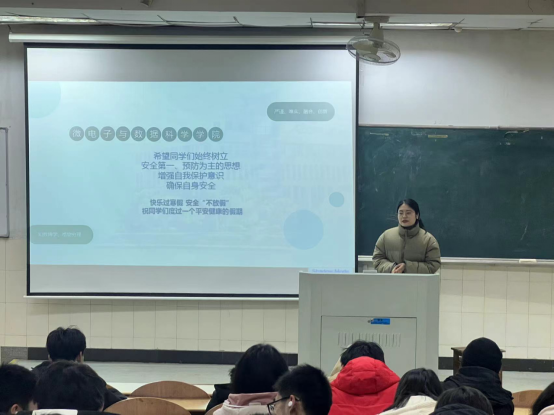 为切实加强假期安全教育,增强员工安全防范意识,1月9日晚,7790cnm必发集团在阶教101召开“快乐过寒假,安全记心中”寒假安全教育大会,会议由辅导员王小花主讲,全体23级员工参会。